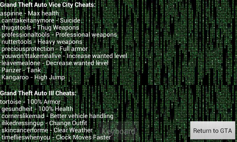 Description of game keyboard for gta vc. game keyboard for gta vc game cheater. vice city cheater application for gta vice city. how to start open application.. In this video i will show you that how we can download game keyboard to apply cheats on gta vice city for android. aptoid link: https://en.aptoide.com/ and t.... Hent cheatcode keyboard v1.0.1 apk (gta vice city cheat) we recommend to purchase/buy this app from play-store or official website to enjoy app without interruption. this apk file is for trial/home use only..